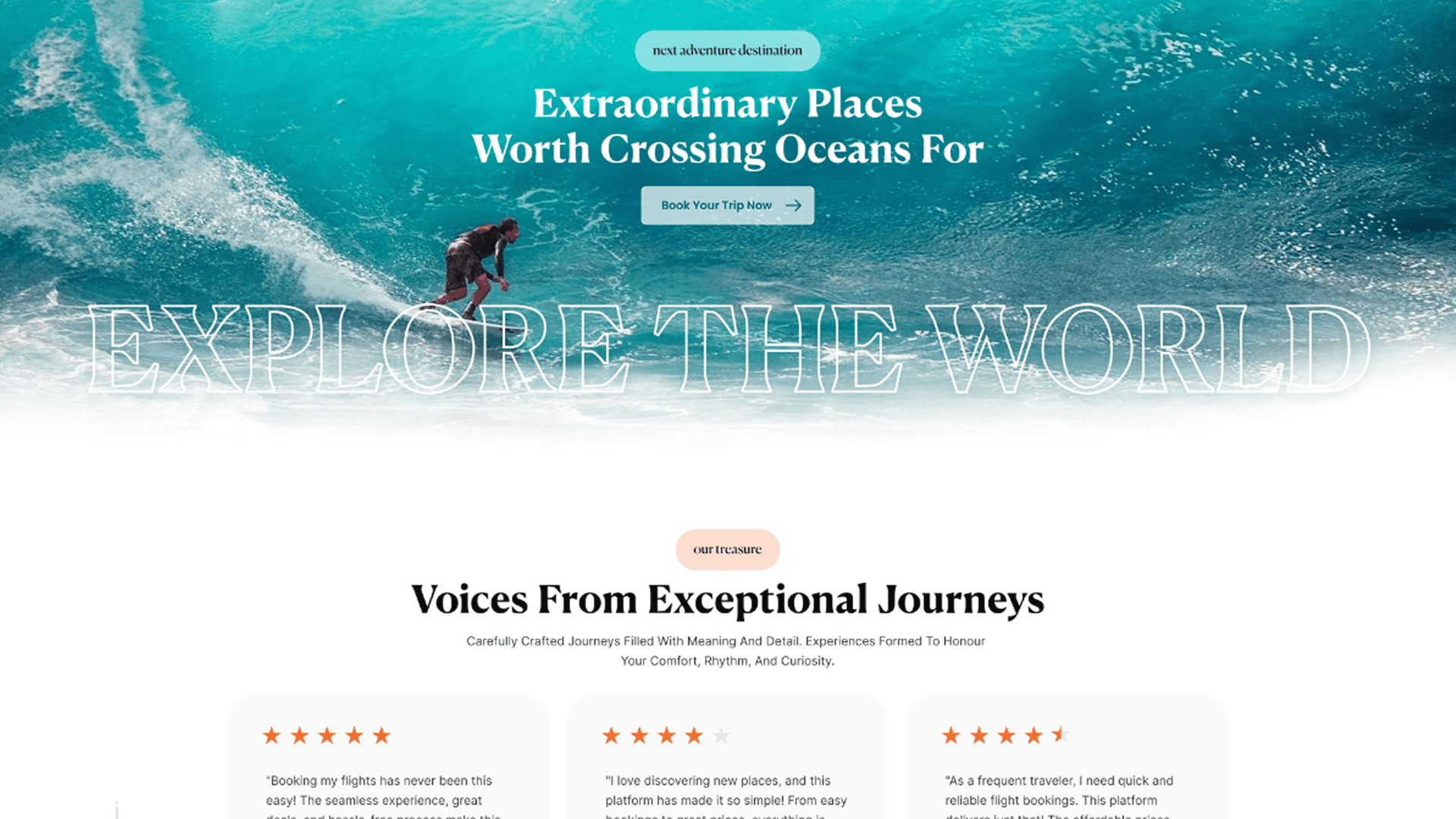This project focuses on creating a seamless travel booking experience by simplifying destination discovery, trip planning, and booking workflows. Initial research highlighted challenges such as overwhelming choices, unclear pricing, and complex navigation.
