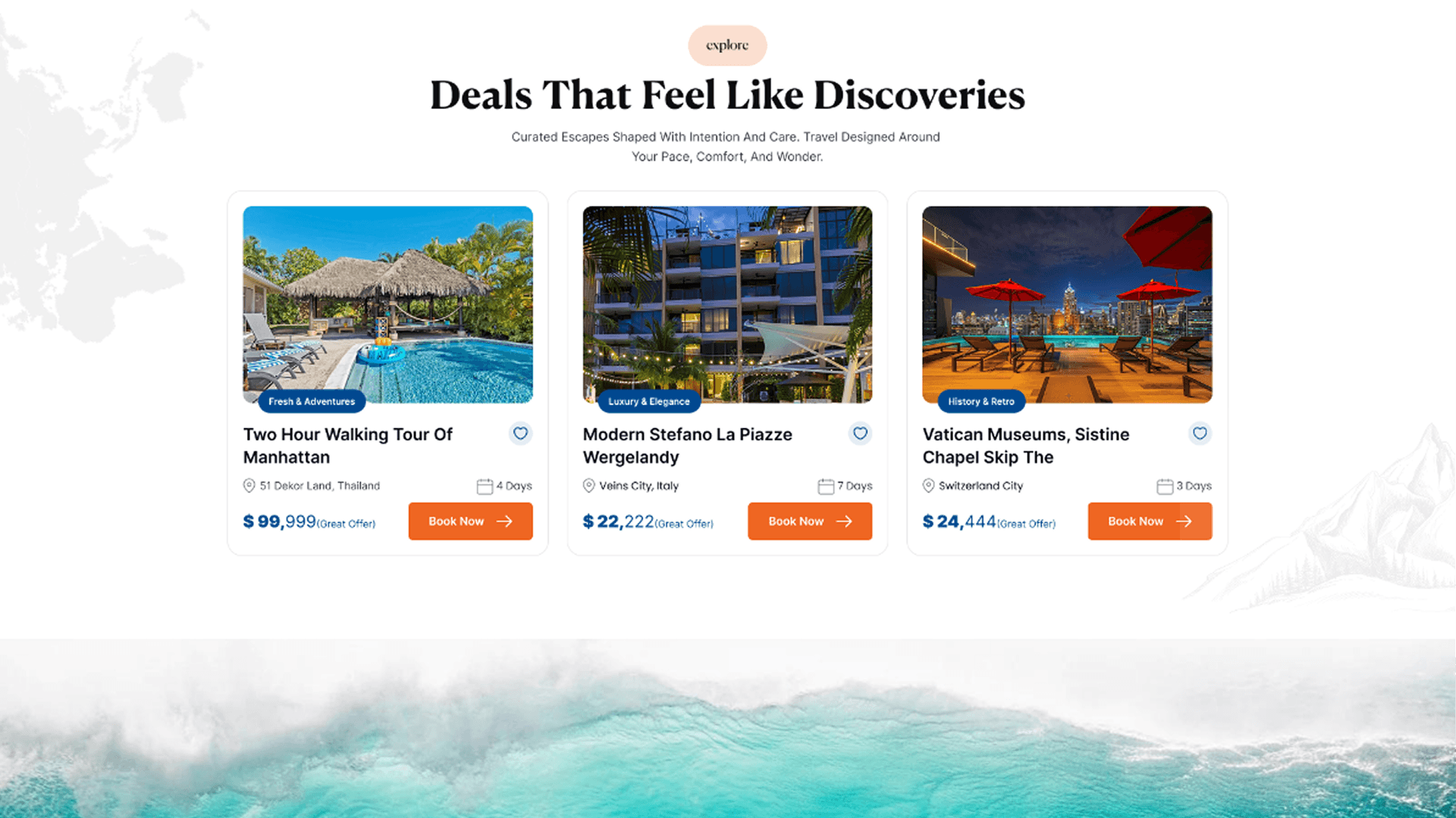 The final solution enables users to explore destinations, discover curated deals, and complete bookings smoothly—delivering a fast, enjoyable, and hassle-free travel experience.