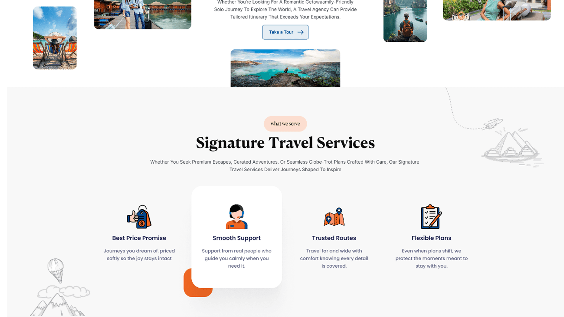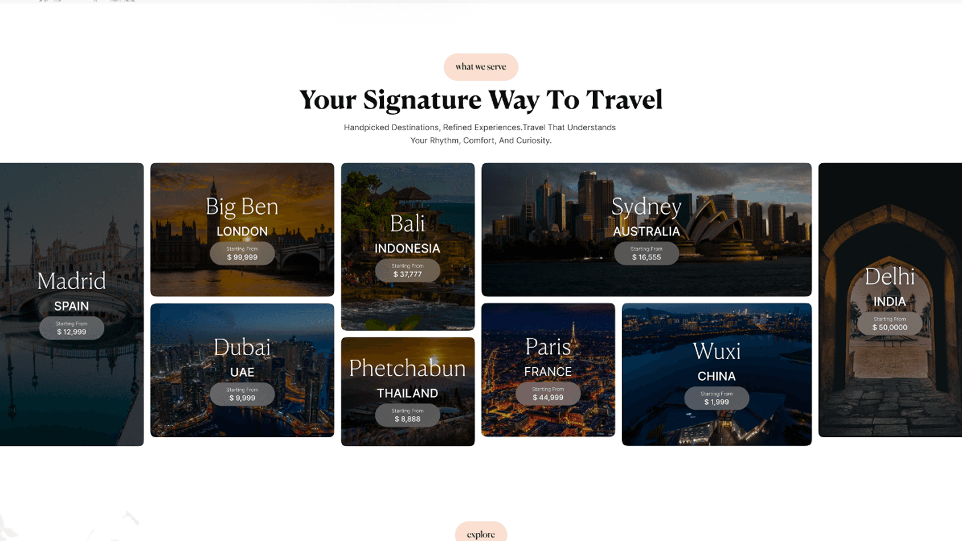 The design prioritizes clarity and ease through intuitive layouts, smart filtering, and visually engaging destination exploration. A clean and modern interface ensures users can browse, compare, and book trips effortlessly.